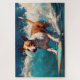 Plongez-vous dans le monde ludique de l'aventure canine avec cette peinture captivante. Un chien plein d'entrain se jette à l'eau, chevauchant habilement les vagues sur une plage baignée de soleil. L'œuvre d'art vibrante capture magnifiquement l'essence de l'excitation du bord de mer tandis que le chien affronte sans crainte les vagues, incarnant l'esprit de plaisir et de liberté. Avec un mélange harmonieux de couleurs et de coups de pinceau dynamiques, cette pièce apporte la joie du surf et de la plage jusque dans votre espace, en faisant un ajout charmant à toute collection d'art.