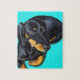 Peinture acrylique de Floppy ou Flops, un dachshund miniature. Je l'ai peinte pour l'anniversaire de ma belle-soeur. J'ai hâte de la rencontrer en personne !
