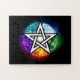 Pentagramme lumineux dessiné de façon artistique avec cinq éléments magiques, eau, terre, feu, astral, air sur arrière - plan noir. Pentagramme de Wiccan. Wicca