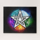 Pentagramme lumineux dessiné de façon artistique avec cinq éléments magiques, eau, terre, feu, astral, air sur arrière - plan noir. Pentagramme de Wiccan. Wicca