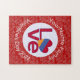 Personalized jigsaw puzzle features an Armenian LOVE FLAG. It features the word LOVE showing in red letters inside a white, fractal-style circle. The circle sits on a red, fractal-style background. Perfect for Valentine's Day or any special time. Travelers to Armenia will like this, too.