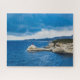 Ce puzzle difficile présente une photo originale d'un petit phare rouge caractéristique sur une falaise blanche à Corse (France) sous un ciel nuageux orageux par jour d'été.