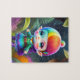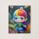 Filles Art Coloré Belle Fluffy Cute Petite Fille Elfe Avec Couleurs Arc-En-Ciel et Fleurs Dans Un Imaginaire Forêt Magique Art Forêt Elf. Poster Coloré Elf Pour Salle Enfants, Salle Bébé, Salle Filles, Puzzle Elf,