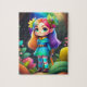 Filles Art Coloré Belle Fluffy Cute Petite Fille Elfe Avec Couleurs Arc-En-Ciel et Fleurs Dans Un Imaginaire Forêt Magique Art Forêt Elf. Poster Coloré Elf Pour Salle Enfants, Salle Bébé, Salle Filles, Puzzle Elf,