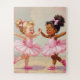 Puzzle mignon avec une illustration de deux petites ballerines mignonnes dansant ensemble. L'une est caucasienne et l'autre est afro-américaine.