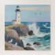 Un phare blanc audacieux se dresse sur une falaise rocheuse escarpée, son puissant faisceau lumineux fendant le ciel tandis que des vagues turquoise dramatiques se brisent violemment contre les rochers en contrebas. Des mouettes blanches volent avec grâce dans le ciel bleu clair et se posent sur la falaise au premier plan, ajoutant de la vie à cette scène nautique sereine mais puissante. Le style d'illustration net et vibrant utilise des bleus frais, des blancs nets, des tons de roche terreux et un horizon lumineux pour capturer la beauté intemporelle et la force du bord de mer. Parfait pour les amateurs de charme côtier et d'aventure océanique.