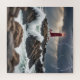 Phare blanc sur un banc rocheux avec nuages d'orage et éclairs