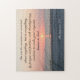 Jigsaw puzzle avec citation inspirante scripture représente une belle photo d'un coucher de soleil doré sur les eaux bleues de l'océan. Il présente une Bible Verse Philippiens encourageante 4:6, "Ne soyez pas anxieux ou inquiet à propos de quoi que ce soit, mais en tout, par la prière et la pétition avec l'action de grâce, continuer à faire connaître vos demandes à Dieu."