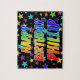 Ce dessin animé, excitant, sur le thème de l'anniversaire, a le message "HAPPY BANTHDAY, PHILLIP" avec les personnages ayant un motif dégradé coloré inspiré du spectre arc-en-ciel, en plus d'un motif arrière - plan de terrain étoilé animé. Un puzzle vibrant comme celui-ci pourrait être une façon amusante d'envoyer des voeux d'anniversaire à quelqu'un nommé Phillip. [~Z0000468]