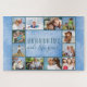 Puzzle photo personnalisé avec belle citation petits-enfants et arrière - plan bleu ciel. Le modèle photo est prêt pour vous à ajouter 12 de vos photos préférées qui sont affichées comme une bordure autour des grands-parents disant. Le texte dit : "Les petits-enfants rendent la vie grandiose" en lettres majuscules et en écriture élégantes. Un beau cadeau de toute façon - des grands-parents à leurs petits-enfants ou des petits-enfants à leurs grands-parents pour s'amuser ou pour épargner pour les somnolents.