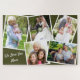 Puzzle personnalisé - ajoutez 5 de vos photos préférées et votre texte personnalisé. Le design comprend un collage photo de 5 images, chacune avec un cadre blanc. Les photos sont sur un arrière - plan vert foncé et votre libellé personnalisé est écrit dans une typographie de script soignée. L'exemple de texte dit "nous vous aimons maman" que vous pouvez personnaliser. Ce puzzle de 1000 pièces ferait un beau cadeau et un beau défi pour maman à tout moment de l'année.