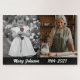 Avec ce puzzle photo mémorial moderne, ajoutez simplement vos photos, le nom de l'être aimé, et les années vécues. L'exemple de photo utilisé est une photo en noir et blanc, mais une photo colorée que vous téléchargez ne deviendra pas en noir et blanc. Gardez vos proches à proximité avec ce cadeau photo souvenir personnalisé.