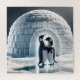 Deux pingouins qui dansent ensemble sur une surface glacée scintillante devant un grand igloo