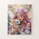 A pretty pink anime elven fairy holding her cute white baby dragon puzzle.