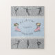 Give the gift of glittering fun with this beautiful Figure Skater Princess Jigsaw Puzzle! It's a delightful activity perfect for celebrating a young girl's passion for the ice. This enchanting puzzle features alternating panels of shimmering silver glitter and a smooth light blue ice texture. Figure skater silhouettes performing various moves adorn the top and bottom borders, showcasing the grace of the sport. The central design includes gorgeous pink skates and the phrase "Ice Skating Princess". This decorative puzzle also serves as a charming keepsake for a girl's room. The central text is ready for personalization! Easily change the name to create a one-of-a-kind custom name puzzle. It's the perfect gift for birthdays, Christmas, or after a big recital. Order this lovely skater activity and bring the sparkle home!