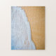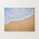 Un puzzle avec la photo d'une plage de sable brun doré au surf mousse blanc.