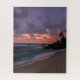 La lumière du soleil qui s'estompe, créant de belles teintes rose et orange dans le ciel, faisant des silhouettes des palmiers et mettant en valeur le surf doux. Une plage calme.