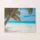 Beau paradis de plage tropicale avec mer turquoise et palmier dominant le magnifique sable blanc. Rêvez de vous détendre et de profiter de cette scène idyllique alors que vous assemblez ce Jigsaw Puzzle alléchant. Facile à customiser avec votre propre nom, texte initial et bref dans la typographie décorative de police.
