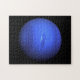 La planète gazeuse Neptune brille un beau bleu sur cette image prise par le vaisseau Voyager 2 de la NASA. Les caractéristiques comprennent une grande tache sombre et une tache brillante qui sont des nuages dans le ciel de Neptune. L'atmosphère de cette atmosphère est principalement l'hydrogène et l'hélium avec des traces d'autres éléments. Neptune passe devant Uranus et les autres planètes et est maintenant considérée comme la planète la plus connue du Système Solaire.