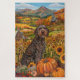 Célébrez la beauté de la chute avec cette peinture vibrante d'un chien assis à côté d'une généreuse moisson de Thanksgiving. Les riches couleurs d'automne des citrouilles, des tournesols et des paysages rustiques des fermes créent une atmosphère chaleureuse et accueillante, parfaite pour toute décoration saisonnière amoureux des chiens.