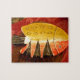 Puzzle poisson plat jaune et rouge avec rayures noires.jp