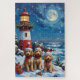Bring elegant, intelligent charm to your holiday season with this sophisticated Poodle Christmas design! This magical scene features three proud, curly-coated Poodles (Standard, Miniature, or Toy) sitting gracefully at the base of a tall red-and-white lighthouse, which stands majestically on a snowy coastal cliff. The lighthouse is beautifully adorned with glowing Christmas lights and fragrant garlands. The dogs wear festive Santa hats and cozy scarves, surrounded by colorful wrapped gifts and cheerful holly branches. The ocean waves sparkle in the moonlight while soft snowflakes drift gently in the air, creating a truly magical winter holiday atmosphere. This design is a perfect Christmas gift for any Poodle owner, dog lover, or admirer of festive and unique dog art, capturing the serene joy of the season.