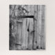 Profitez de mettre cette image 'Porte de Grange avec Arbre' puzzle ensemble, une image rustique du bois usé et patiné d'une porte de grange serrée avec un arbre poussant contre le mur extérieur des planches. Fait en noir et blanc.