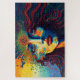 Ce puzzle d'art psychédélique coloré présente le portrait d'une belle femme aux cheveux qui coule d'un côté et un médaillon au centre de son front. Il ferait un beau cadeau pour un passionné de scie.
