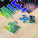 Ce design de puzzle animé, vibrant, sur le thème de l'anniversaire a le message "HAPPY BANTHDAY, JAMIE" avec un spectre coloré arc-en-ciel inspiré motif dégradé, et un amusant feu d'artifice inspiré des motifs arrière - plans. Un puzzle vibrant comme celui-ci pourrait être une façon amusante de reconnaître l'anniversaire de quelqu'un nommé Jamie. [~Z0000465]