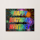 Ce puzzle animé et amusant sur le thème de l'anniversaire a le message "HAPPY BANTHDAY, WHITNEY" avec un spectre coloré arc-en-ciel inspiré motif dégradé, et un feu d'artifice festif excitant inspiré motif arrière - plan. Un puzzle vibrant comme celui-ci pourrait être utilisé pour envoyer des voeux d'anniversaire à quelqu'un nommé Whitney. [~Z0000465]