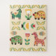 Cute pastel background of hand drawn animals and flowers for kids.