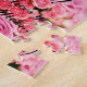 Puzzle de proposition de mariage, avec le texte « Te mariez avec moi ! (Nous Serons heureux et mangerons des perdrix…) » avec branche de roses de couleur rose et alliances sur le fonds ton pâtisserie. Une surprise inoubliable !