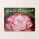 Ce puzzle à écriture florale présente une photographie d'un rose à variation rose et blanche, avec le verset de la bible "Il restore mon âme...". Psaume 23:3