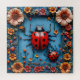 Des coccinelles colorées qui sont assis sur une surface bleue avec des fleurs