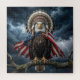 Un pygargue à tête blanche est perché sur une branche d'arbre pendant un orage, portant un drapeau américain et une coiffe amérindienne