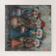 Quatre vieilles dames en costume soigné, portant sacs à main et fleurs, portant des lunettes, debout à côté. Une représentation artistique de quatre grandes dames en tenue vintage coordonnée, avec des casquettes ornés et des ornements floraux. Les personnages expressifs et les détails vibrants font de cette pièce une ode chaleureuse au style et à l'individualité supérieurs