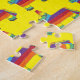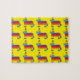 Puzzle features an original marker illustration of a colorful rainbow donkey pinata on a yellow background. Great for a birthday party, pride, Cinco de Mayo, or any fiesta-themed event!