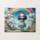 "Rêves arc-en-ciel" Ce puzzle est une scène fantaisiste d'une jeune fille dans un paysage à thème arc-en-ciel.