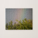 Ce superbe puzzle présente une belle photo paysagère d'un arc-en-ciel au-dessus de quelques arbres. La photo a été prise immédiatement après une tempête de pluie pour capturer les couleurs vives de l'arc-en-ciel. Le ciel environnant est gris et couvert de nuages.
