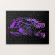 Un zèbre rayé violet et rose sur un arrière - plan noir.