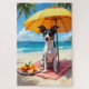 A lively Rat Terrier enjoying a sunny beach setting with tropical fruits and ocean views. The painterly style creates a fresh and energetic coastal feel.