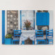 Ce somptueux puzzle abrite un restaurant traditionnel blanchi à la chaux avec table et chaises à l'extérieur du village d'Oia, à la pointe sud-ouest de Santorin, en Grèce. #oia #santorini #greece #europe #europe #mediterranean #vacances #culture #vacances #milos #egean #destination #architecture #greek #île #village #traditionnel #jigsaw #puzzle #jigsawpuzzle #fun #jeux #cadeaux #stockingstuffers