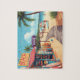 Enjoy the vibrant, cheerful vibe of a perfect summer day with this illustrated puzzle. The image features a retro-style "This Way to the Beach Shop" and a wooden boardwalk leading to the ocean. Palm trees, surfboards, beach umbrellas, and relaxed people create an idyllic tropical vacation setting. This puzzle is full of bright colors and whimsical detail, offering a fun and nostalgic puzzling experience. Great for travel enthusiasts, summer holidays, or fans of vintage poster art.