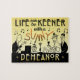 Ce puzzle de antiquité-regard a un style de l'art déco 20s. Les deux hommes et une femme dans la conception sont à l'origine apparus dans une vraie publicité de chandelier des années 1920 dans un journal. Ici, ils sont refaits dans des musiciens et des partie-amateurs. L'homme du côté gauche joue le piano et la femme joue en passant le tambour tout en sirotant son vin. L'autre homme apprécie la musique. Le texte inspiré et original indique, la "vie peut être plus désireuse avec un comportement ensoleillé." Elle est a tout fait aux nuances du noir et à un jaune-orange ensoleillé et d'or avec des rayons.
