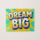 Bold inspirational quote retro bubble lettering bright yellow and blue colors.