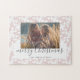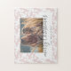 Motif Rococo rose et blanc Joyeux Noël Script Photo Puzzle. Motif classique rococo rose et blanc. Ajoutez votre photo, texte et faites un cadeau de Noël tendance et chic.