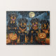 Libérez l'esprit éffrayant avec ce design d'Halloween étrange avec une meute de chiens sous un ciel sombre et clair de lune, entourée de chauves-souris volantes et de citrouilles brillants. Parfait pour ceux qui aiment une touche de plaisir effrayant avec leurs amis en fureur !