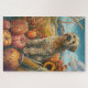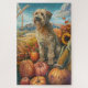 Célébrez la beauté de la chute avec cette peinture vibrante d'un chien assis à côté d'une généreuse moisson de Thanksgiving. Les riches couleurs d'automne des citrouilles, des tournesols et des paysages rustiques des fermes créent une atmosphère chaleureuse et accueillante, parfaite pour toute décoration saisonnière amoureux des chiens.