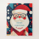 Ce puzzle de Noël pour les enfants présente une jolie illustration géométrique du Père Noël avec un message personnalisable.