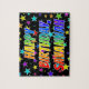 Ce puzzle animé et amusant sur le thème de l'anniversaire comprend le message "HAPPY BANTHDAY, SAVANNAH" avec les personnages ayant un motif dégradé coloré inspiré du spectre arc-en-ciel, en plus d'un motif arrière - plan vedette dynamique. Un puzzle coloré comme celui-ci pourrait être une façon amusante d'envoyer des voeux d'anniversaire à quelqu'un nommé Savannah. [~Z0000468]